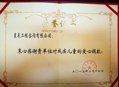 殘疾兒童愛心捐款榮譽